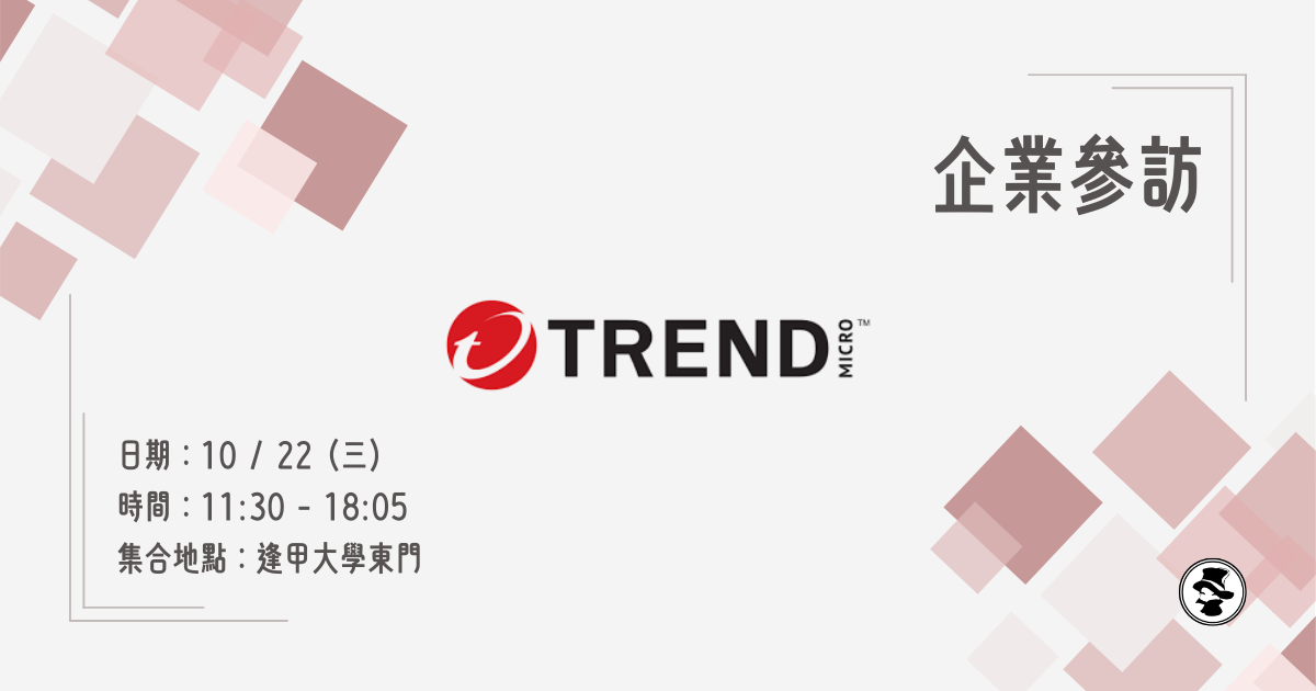 本次活動將前往 趨勢科技 參訪,認識趨勢科技。